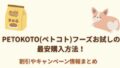 この記事では、ペトコトフーズのお試し内容や割引情報をわかりやすく解説し、ムダなく購入できるポイントを丁寧に紹介していきます。PETOKOTO(ペトコト)フーズを検討するなら、まずお試しセットで愛犬の食いつきや体調を確認してみたいですよね。公...