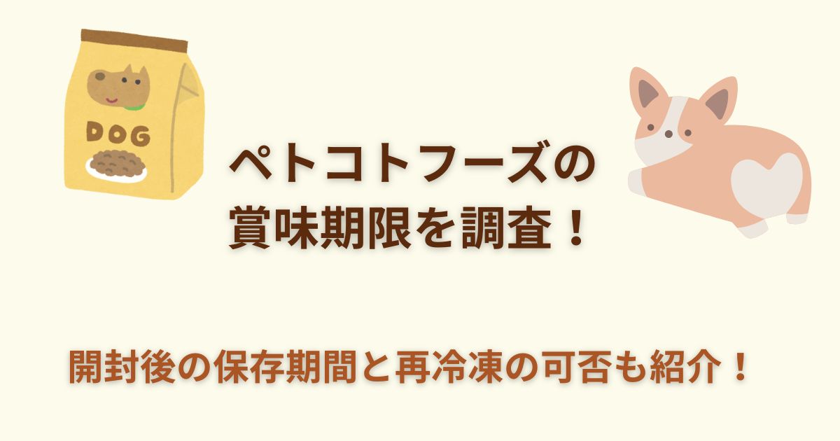 この記事では、ペトコトフーズの賞味期限について、冷凍フレッシュと常温レトルトの両方ともわかりやすく解説し、正しい保管方法についても解説しています。